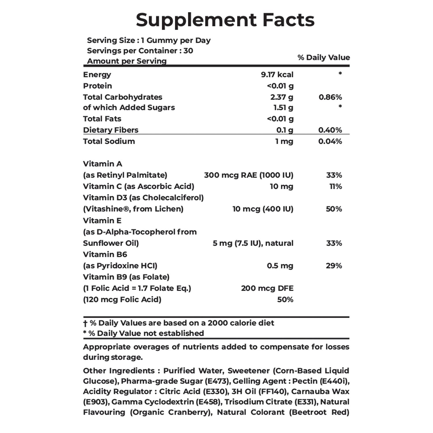 Enriched with Essential Vitamins: But that’s not all. Our Biotin Gummies are fortified with a blend of essential vitamins to enhance your overall well-being. Vitamin A supports healthy vision and immune function, while Vitamin B9, also known as folic acid, aids in cell renewal and energy metabolism. Vitamin C boosts collagen production for youthful skin, and Vitamin D3 promotes bone health and immune system support.